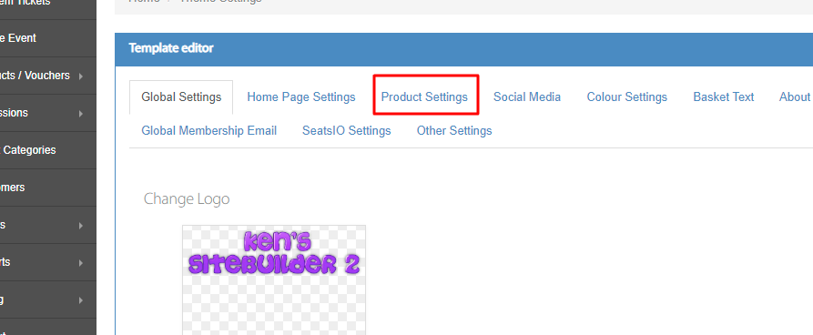 Next select the Product Settings Tab