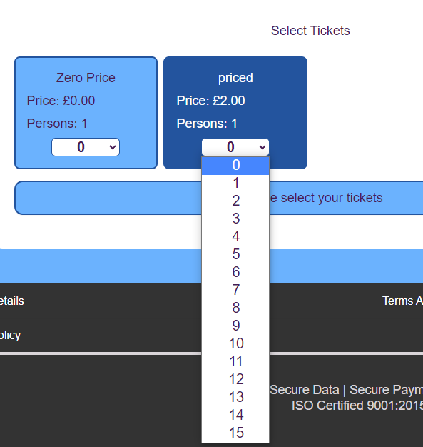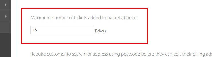 Whenever a customer clicks into the ticket quantity box on the website they have a choice to choose up to a maximum of 15 tickets to add to the basket. Remember they can revisit the event and add more if they choose to. It is NOT a limit number.