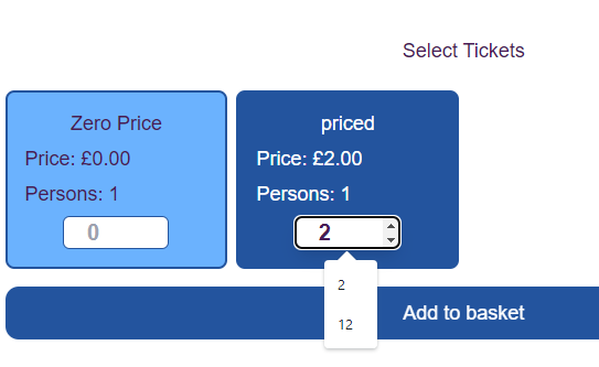 Or the number input style, where the customer can type the number of tickets required.