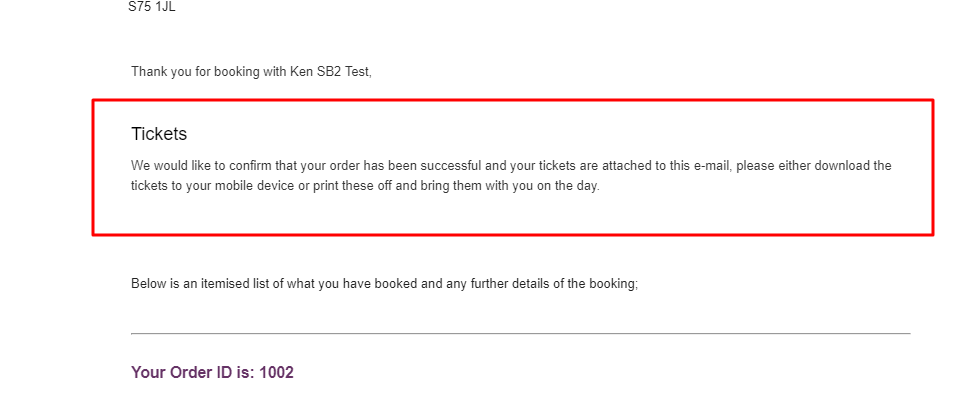 Remember this is a GLOBAL email and is sent out no matter what the event is with every ticket booking. But there is nothing to stop you adding sub-headings for different events.