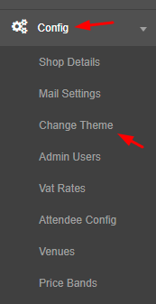 First login to the online admin area. Once you are on the dashboard using the left-hand menu, select the Config tab, then the Change Theme tab. This will open the Theme setting window.