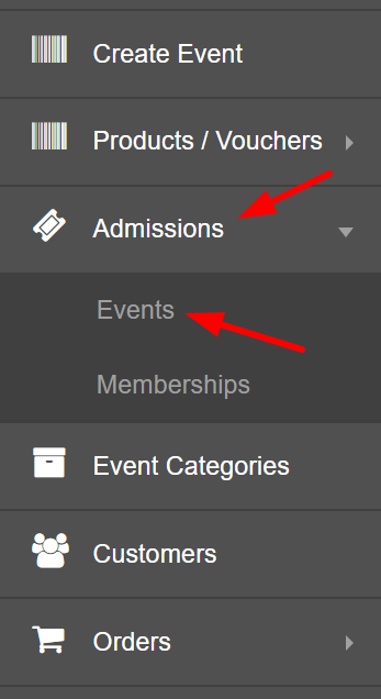 Next, navigate to the Config tab using the menu on the left-hand side. Then select the ‘Admission/Events’ tab.