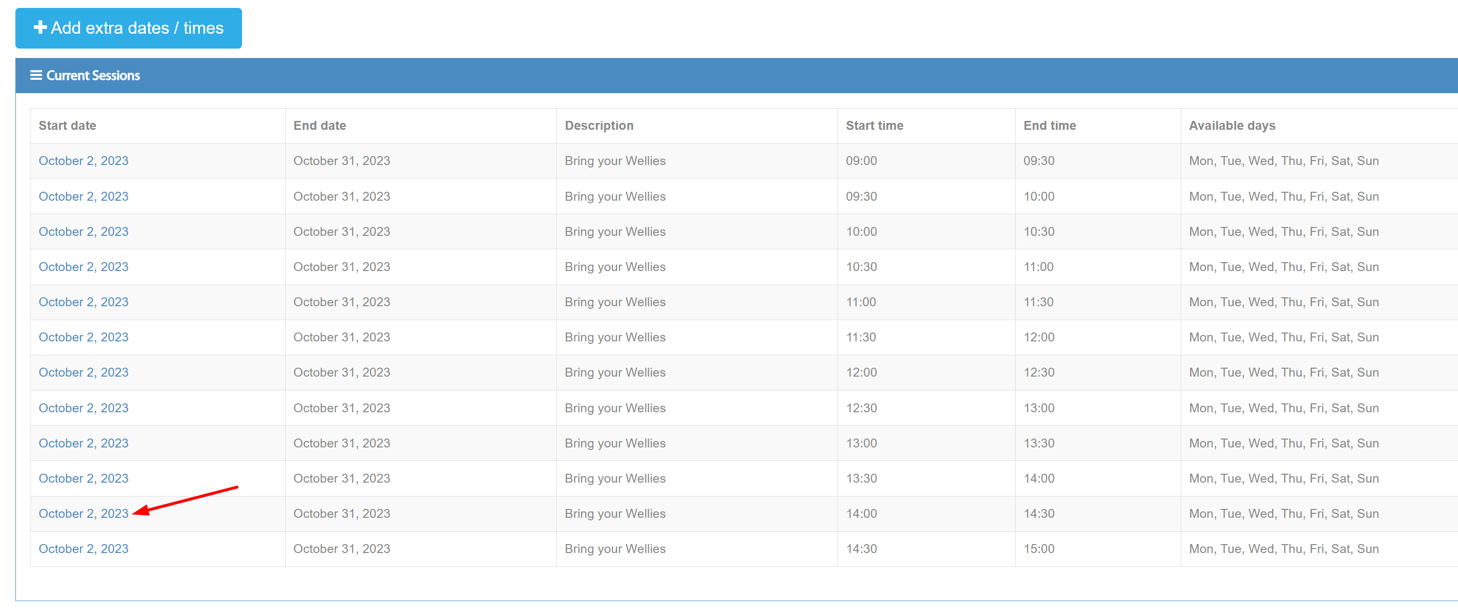 For this demonstration, let’s assume you want to edit the session on October 30th at 14:00.