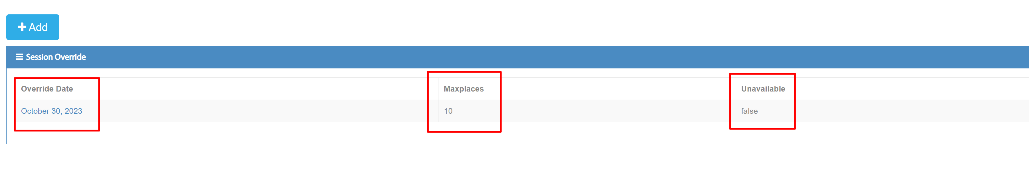 Now, before I look on the front-end ticketing website to make sure it has lowered the maximum headcount for October 30th at 2 PM, I am just going to scroll down on the session window and see if I can see the override line.