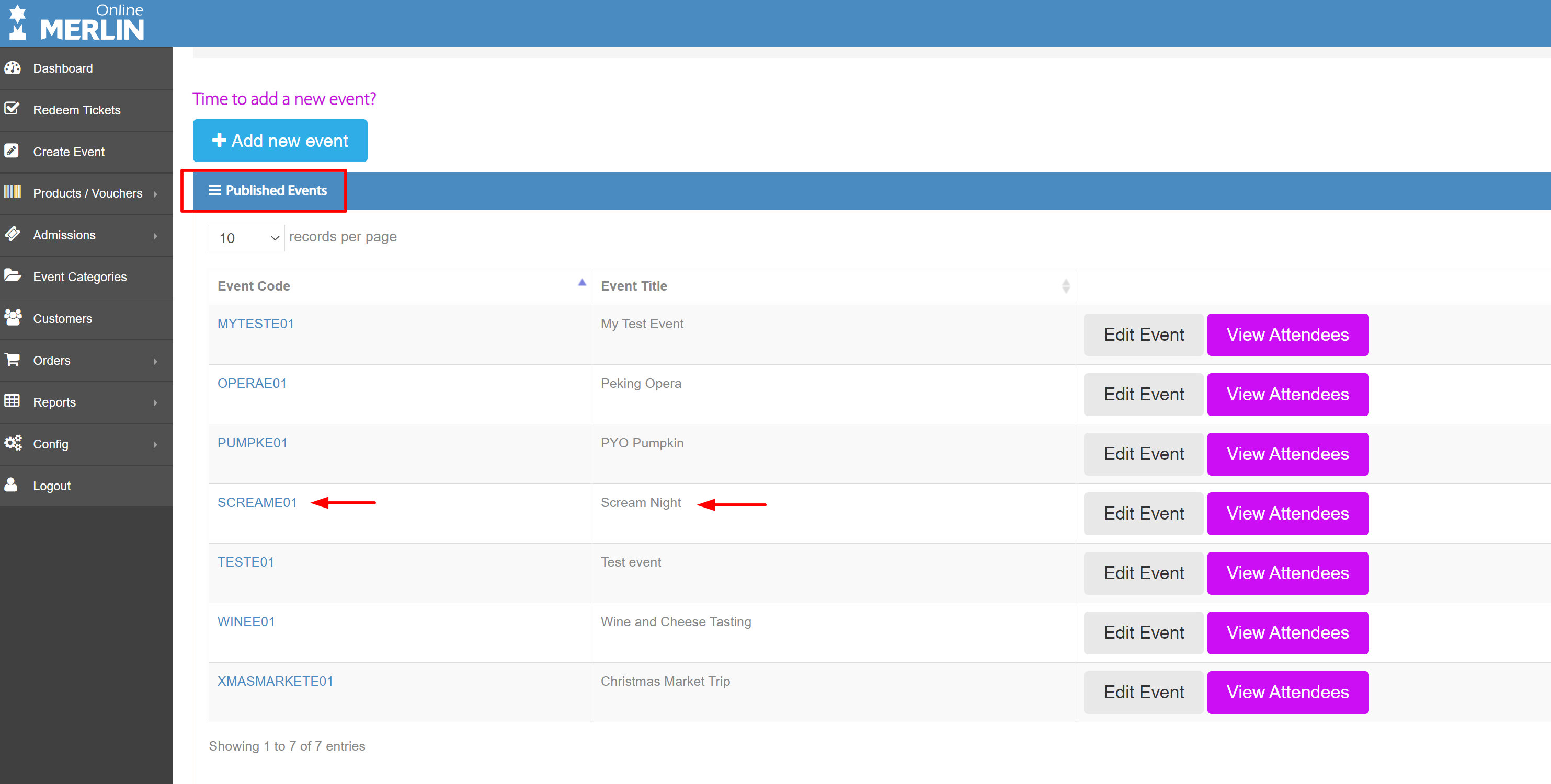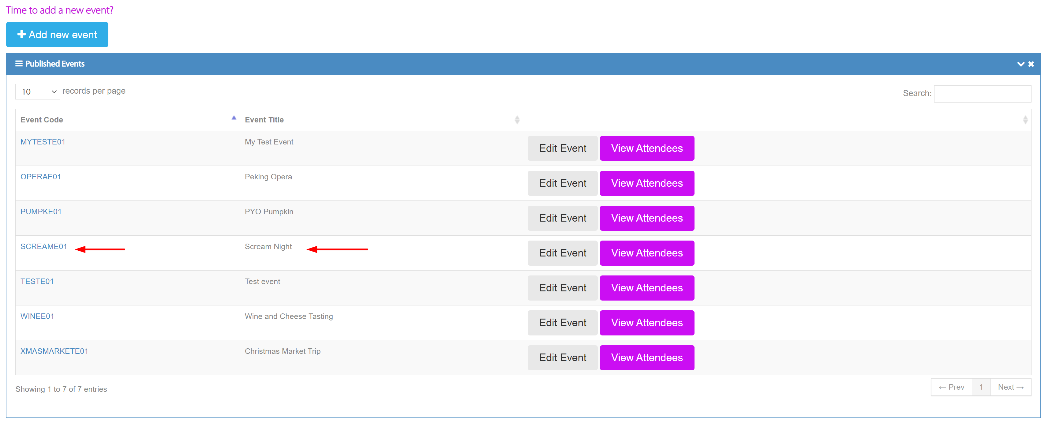 Here, I can see my event ‘Scream Night’, so I have selected this event. This will add the event into the data field. All I need to do now is click the ‘Add’ button.