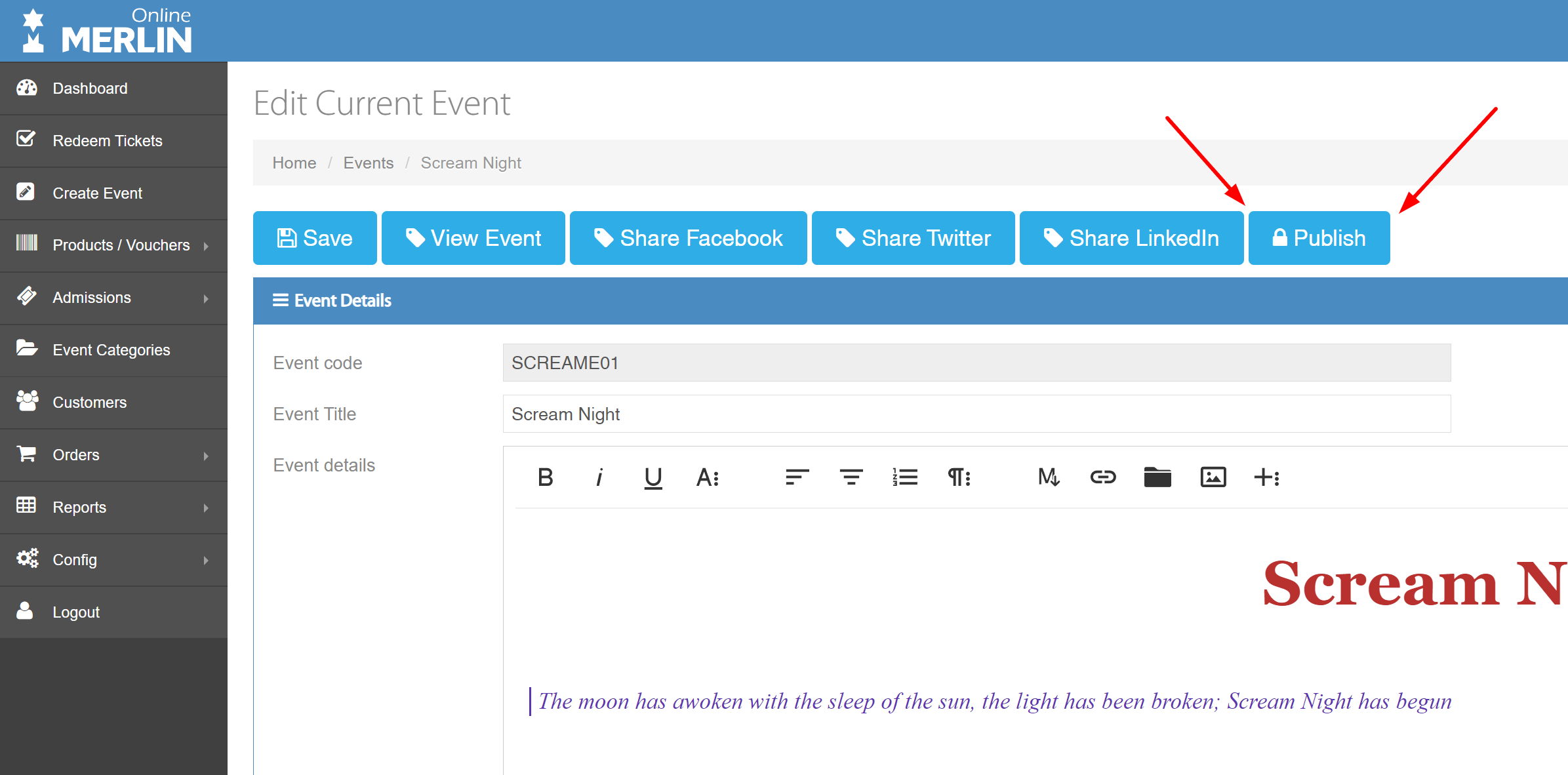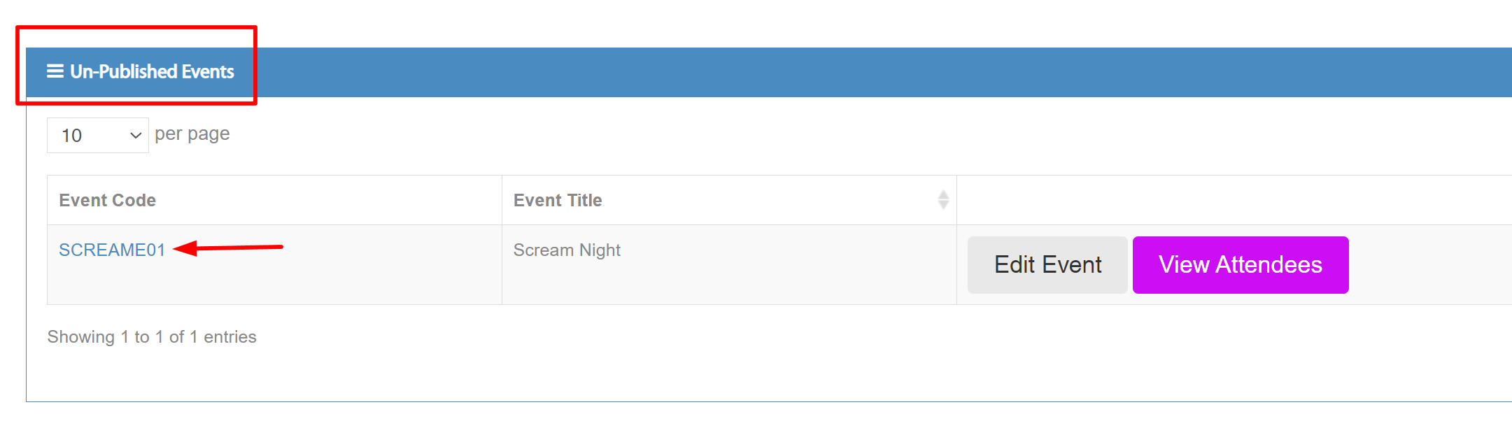 Firstly, let’s make sure the event is listed and set as published.