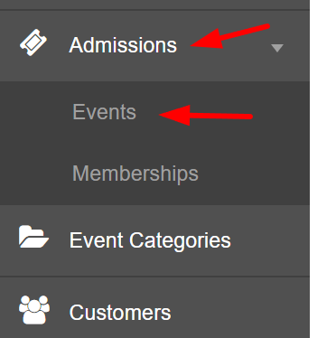 Using the left-hand menu, select the ‘Admissions’ tab and then the ‘Events’ tab.