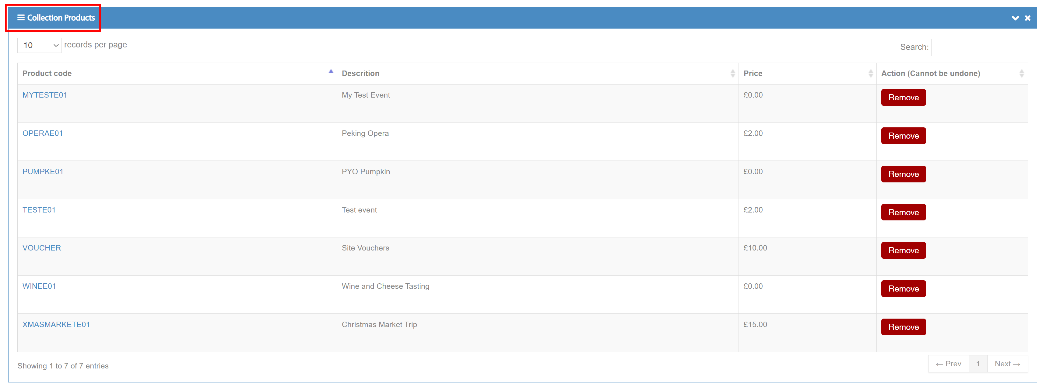 If you scroll down to the ‘Collection Products’ table, it will list all events stored in this collection.