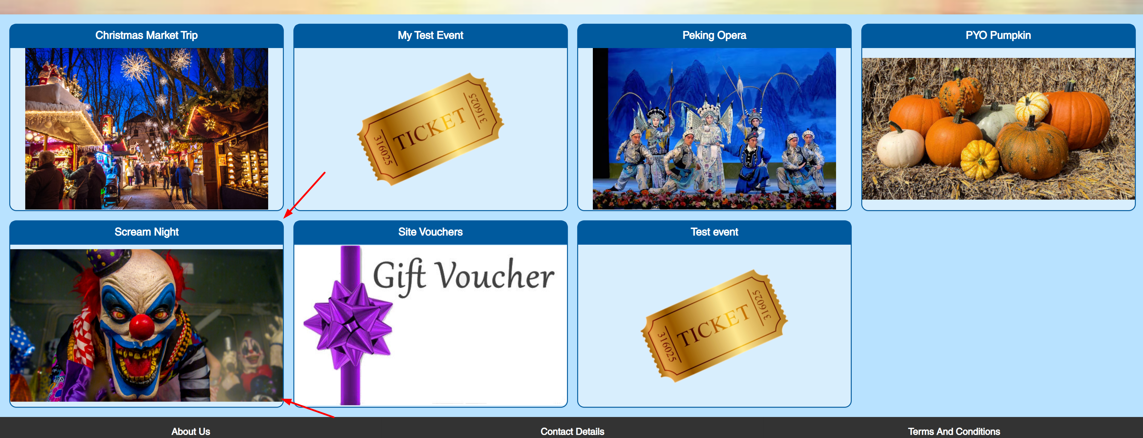 I have just added an event called ‘Scream Night’ for Halloween. However, when I look at my index page, I notice that it is not showing in the listings.