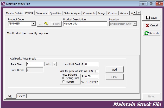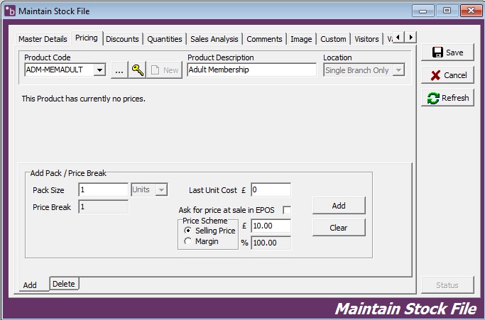 - Next to the ‘Selling Price’ type in the price of the membership you are creating (for e.g. £10.00).