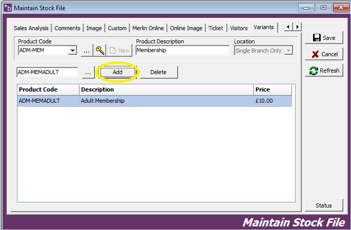 5. Click ‘Save’ on the right-hand side. Now you need to create variants for each voucher such as Adult, Child, and Senior etc. You need to repeat step 3 using a different code for your membership (for e.g. ADM-MEMADULT).