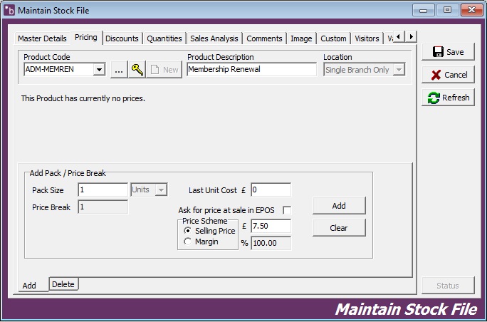 - Next to the ‘Selling Price’ type in a price for the renewed membership (for e.g. £7.50 for a 25% discount).