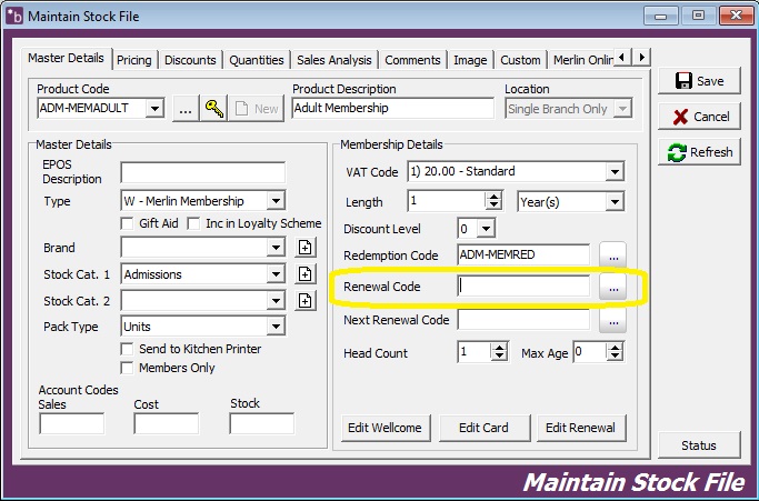 3. Go back to the ‘Master Details’ tab and add the redemption code you created earlier. Click ‘Save’. Now you need to add the renewal to all the priced memberships you have created (for e.g. ADULT, CHILD, SENIOR, CONCESSION, etc.).